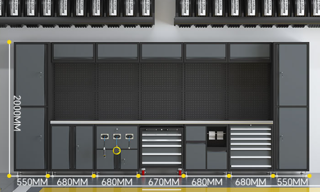 Accessoires inclus:Pegboard, Serrure à clé, Tiroirs, Roues