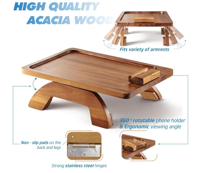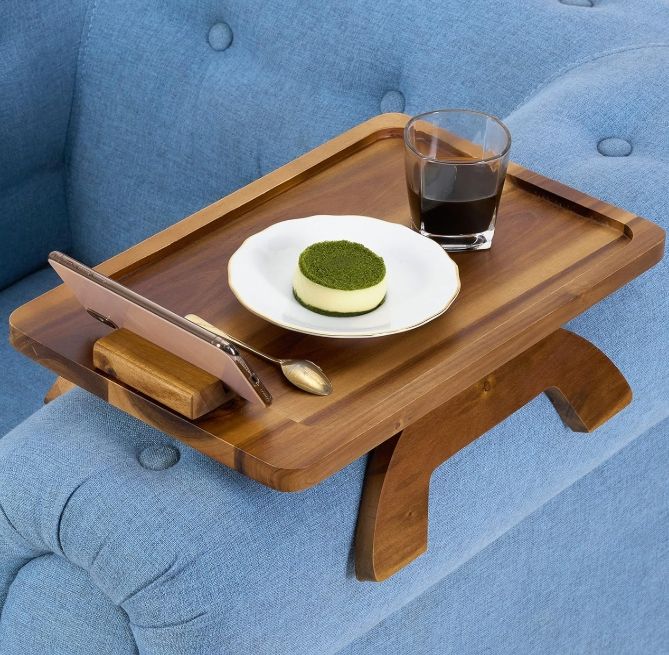 Plateau d'accoudoir de canapé 360 support de téléphone rotatif Table de collation pliante différentes largeurs formes d'accoudoir plateaux de rangement pour bras de canapé