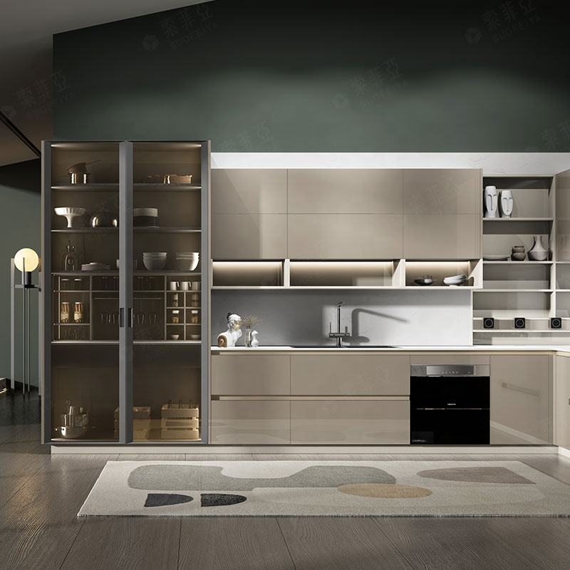 Cuisine moderne de luxe sur mesure Sofeyia, prix abordable, armoires de cuisine laquées brillantes