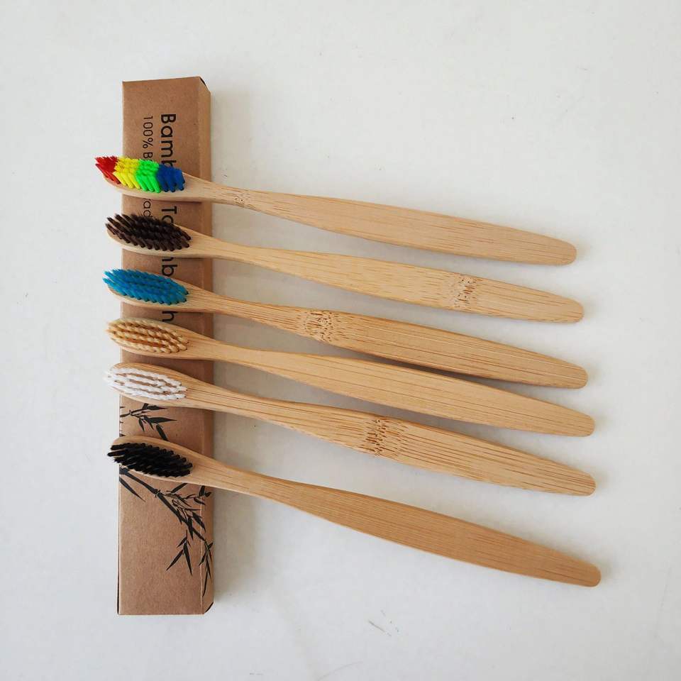 Brosse à dents jetable en bambou souple, biodégradable, pour hôtels, auberges, maisons d'hôtes, multicolores