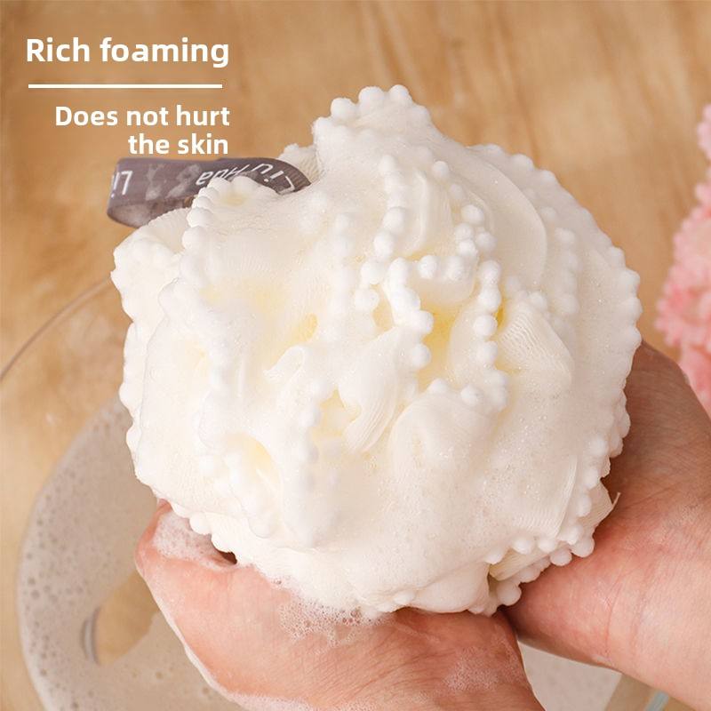 Balle de bain douce exfoliante en forme de fleur, grande balle de bain moussante pour hommes et femmes