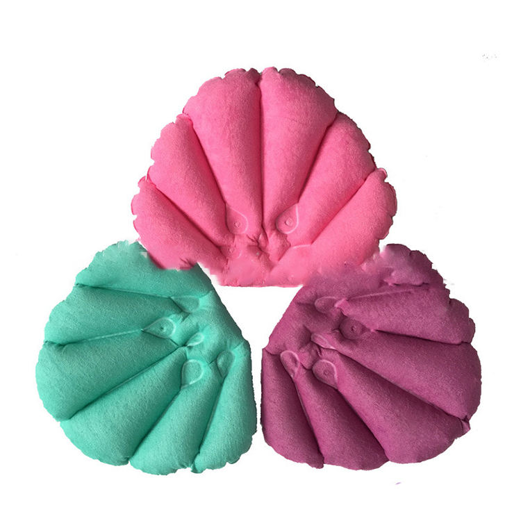 Oreiller de bain doux pour la maison, confortable, spa, coussin de bain gonflable en forme de coquille, coussin de bain pour le cou, accessoires de salle de bain