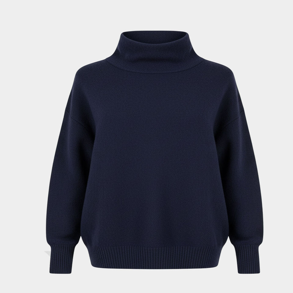 Soft Breath Winter Long Women Oversized Mockneck Sweater with Knitted Warm Airy Fabric Relaxed Gentle Minimal Design