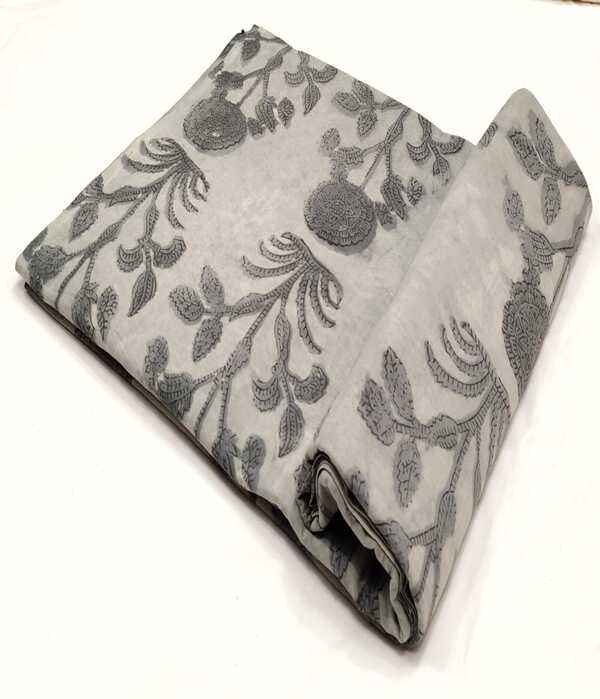 Tissu en coton doux et respirant imprimé à la main, motif traditionnel, idéal pour les vêtements et l'ameublement.