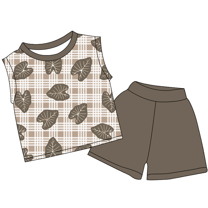 Ensemble deux pièces en soie de lait douce et respirante pour enfants, imprimé personnalisé, style hawaïen, décontracté, sans manches, pour garçons et filles, vente en gros