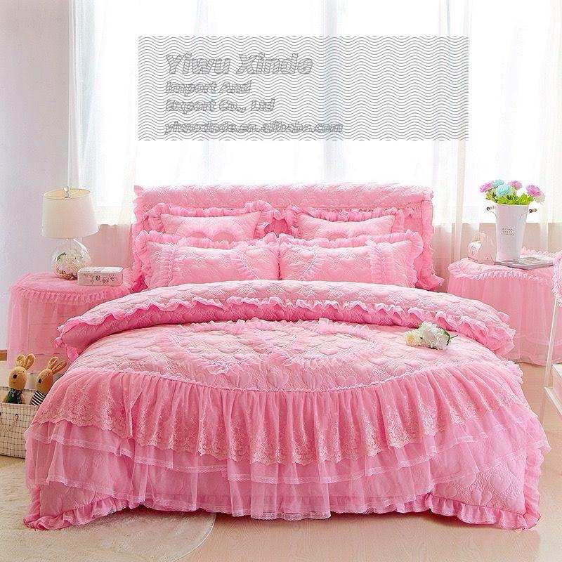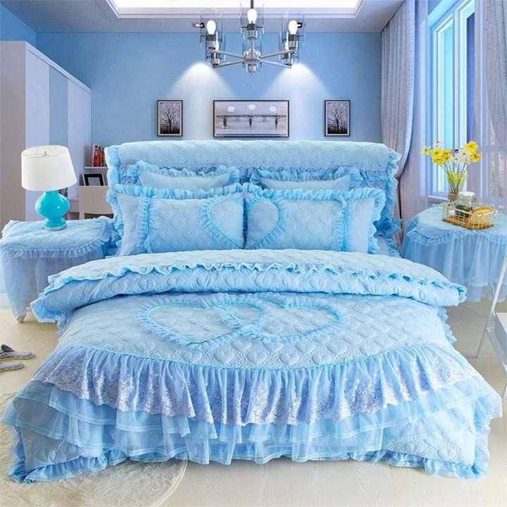 Parure de lit 6 pièces style princesse avec jupe de lit, imprimé réactif respirant et brodé, matelassée décorative