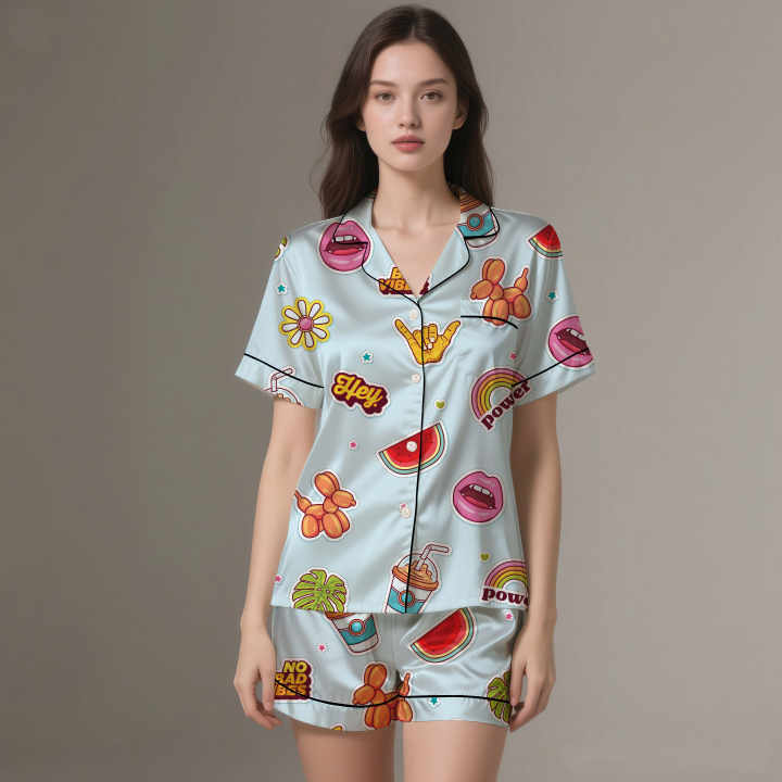 Description:Ensemble pyjama en satin pour femme