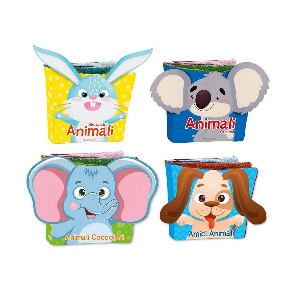 Livres en tissu doux avec oreilles froissées, éducatifs et colorés pour l'apprentissage des enfants de 3 à 6 mois, 4 articles, 8 pages, fabriqués en Italie et en Chine, CoccoleDiStoffa
