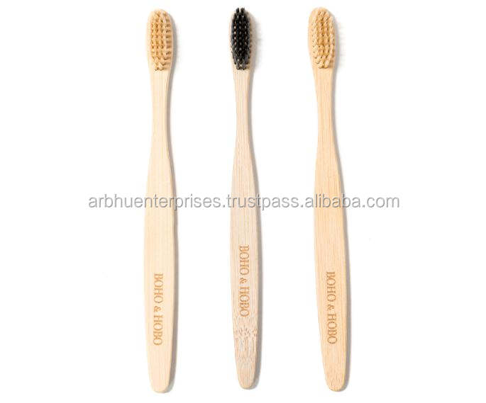 Brosse à dents en bambou en forme de C à poils doux pour enfants, brosse dentaire en bois naturel biodégradable pour un nettoyage doux des dents