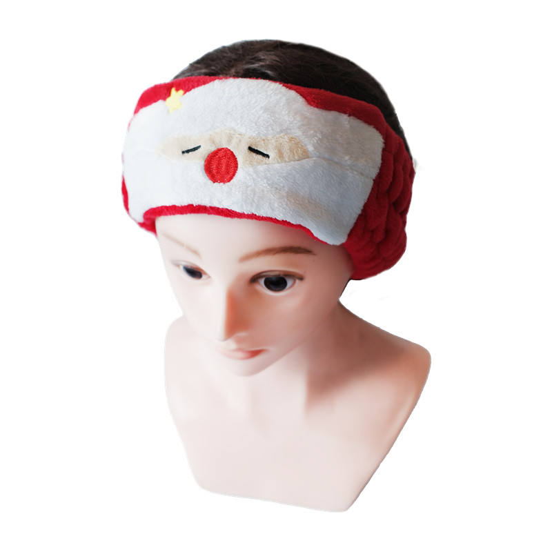 Bandeau de maquillage en molleton de corail doux avec motif de dessin animé de Noël avec bande élastique pour sécuriser les cheveux, les soins de la peau et la routine de beauté