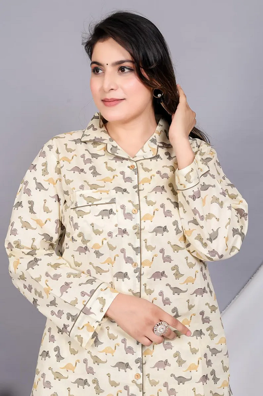 Ensemble de pyjama imprimé en coton doux pour femmes comprenant un haut boutonné et un pantalon élastique confortable, idéal pour les vêtements de nuit décontractés