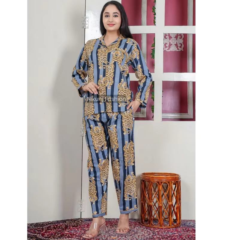 Ensemble de pyjama en coton doux imprimé pour femmes, comprenant un haut à boutons et un pantalon confortable à élastique, idéal pour une nuit de sommeil décontractée