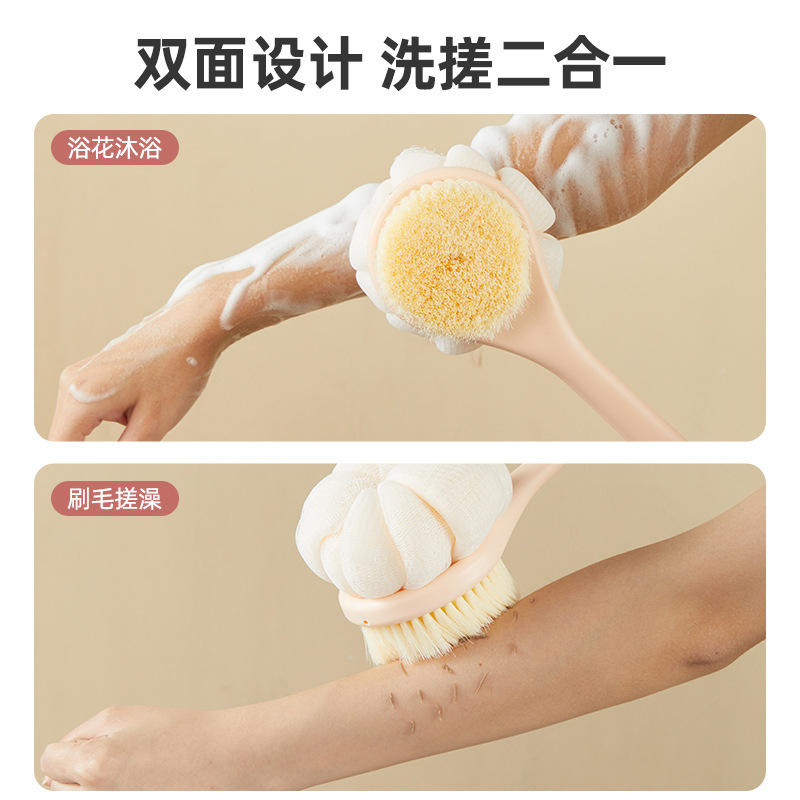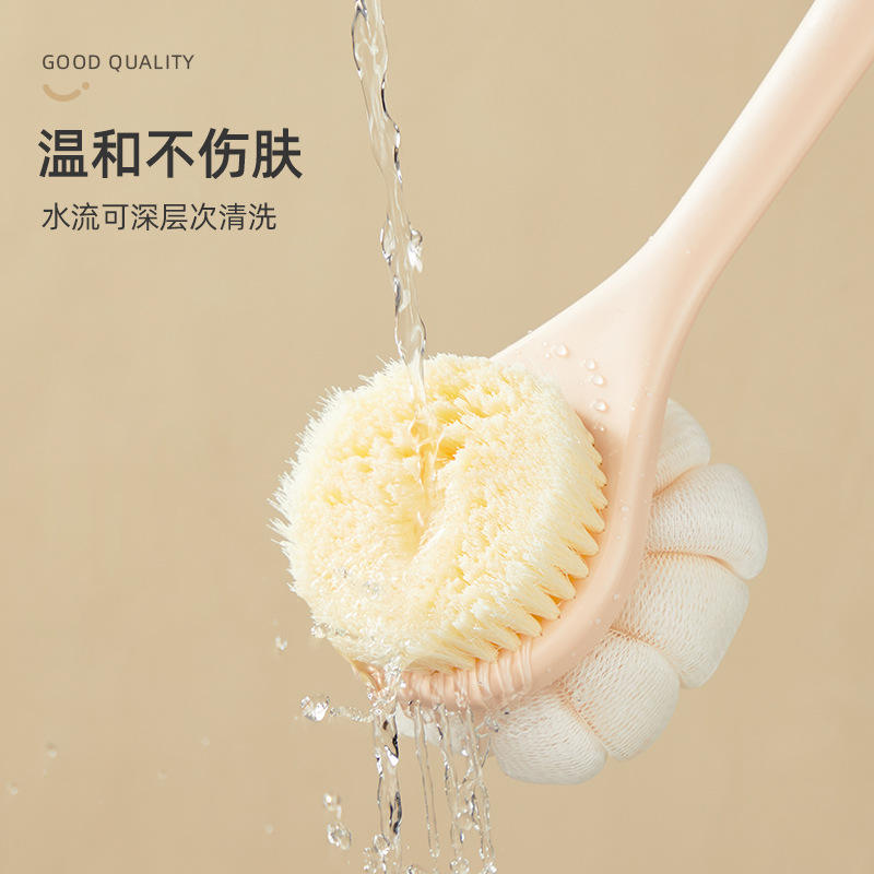 Brosse de bain douce double face avec long manche de forme ovale pour nettoyer le dos et nettoyer en profondeur, douce pour la peau