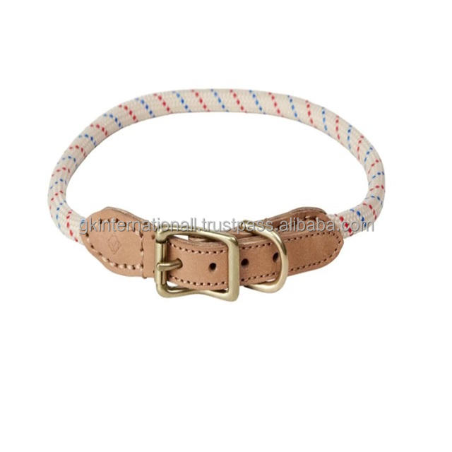 Matériau souple et durable en nylon et cuir collier de chien boucle en laiton anneau D corde réglable en nylon collier pour chien en cuir