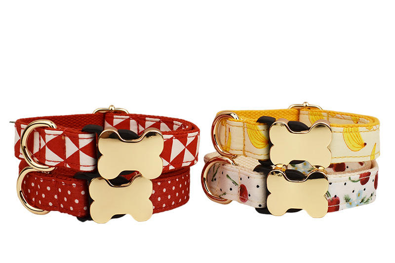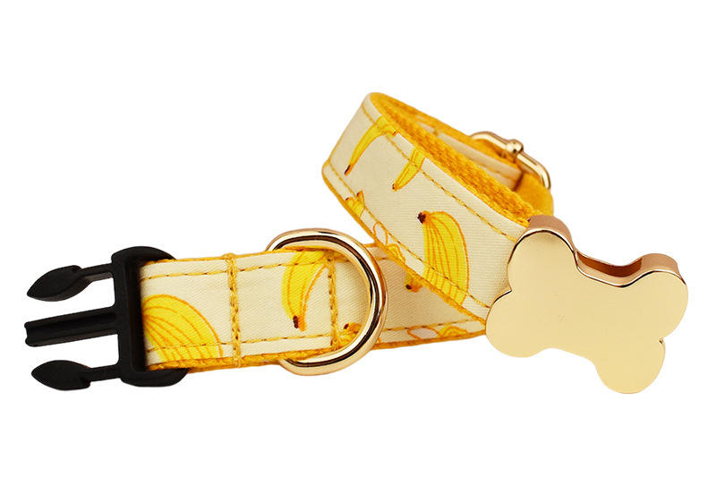 Collier pour chiot souple et durable avec logo personnalisé, mignon collier de chien à motifs de fruits bananes jaunes avec anneau et boucle en métal
