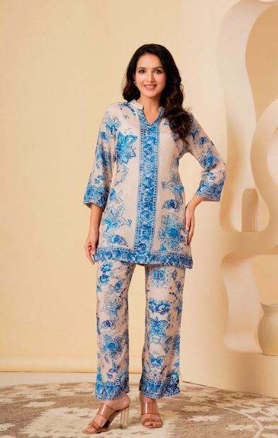 Ensemble coordonné en tissu doux, confortable à porter toute la journée, ensemble coordonné en coton imprimé, ensemble décontracté élégant pour l'été, fabriqué par le fabricant à prix de gros