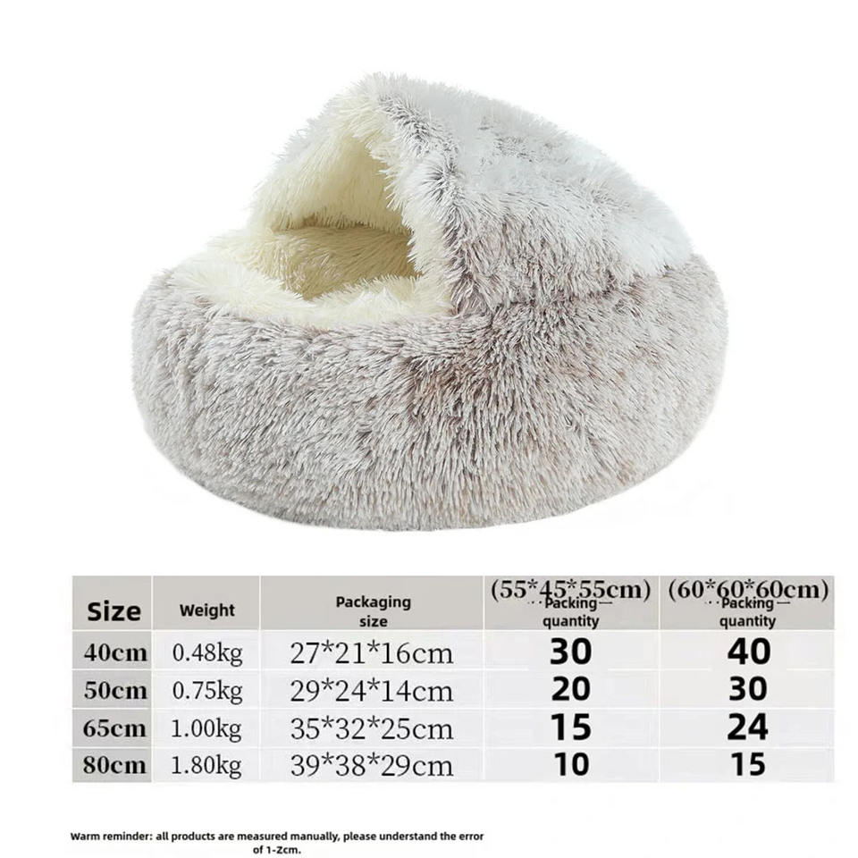 Lit pour animaux de compagnie en peluche douce et moelleuse, grand et rond, confortable et luxueux, pour chien et chat, sommeil profond, hiver chaud, semi-fermé