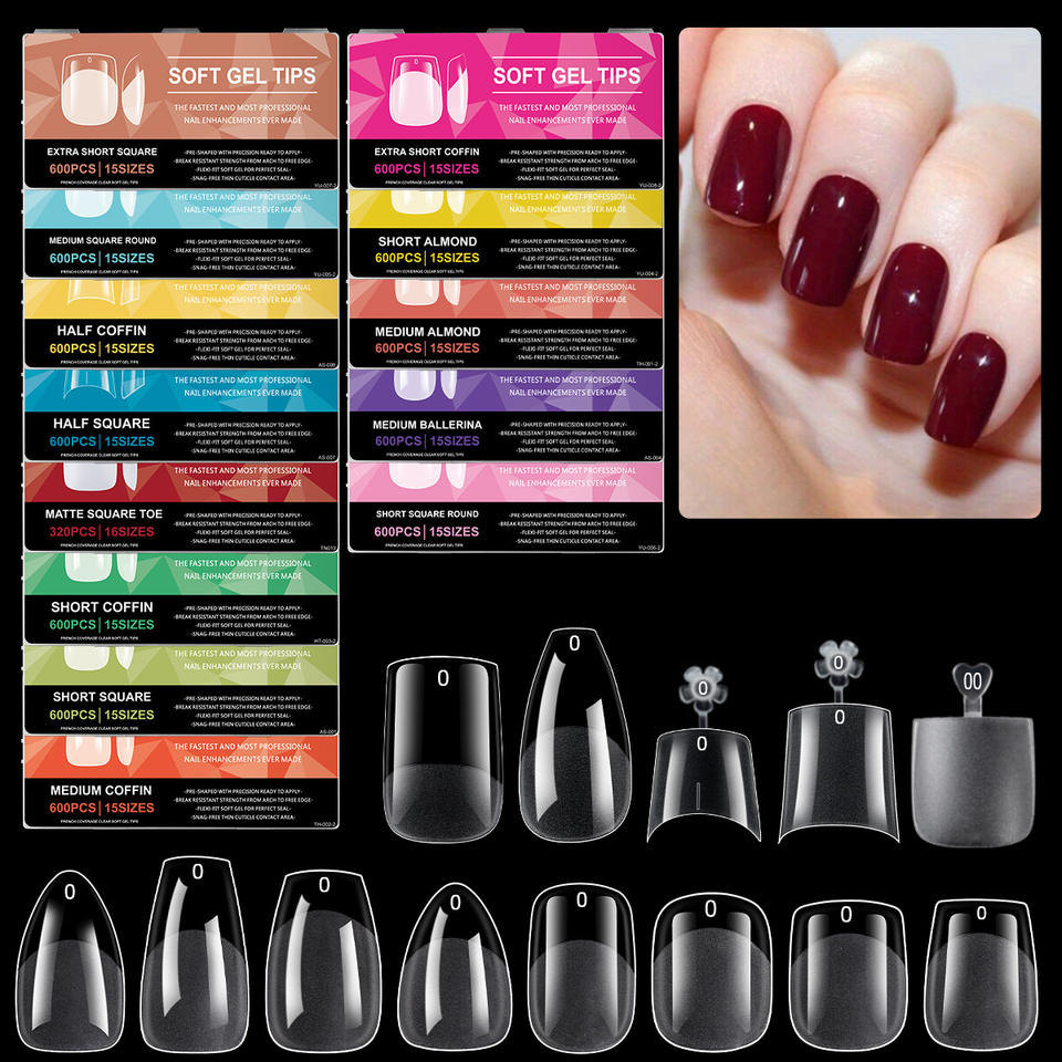 Faux ongles en gel souple à couverture complète, en PMMA acrylique, à presser, pour salon ou usage domestique