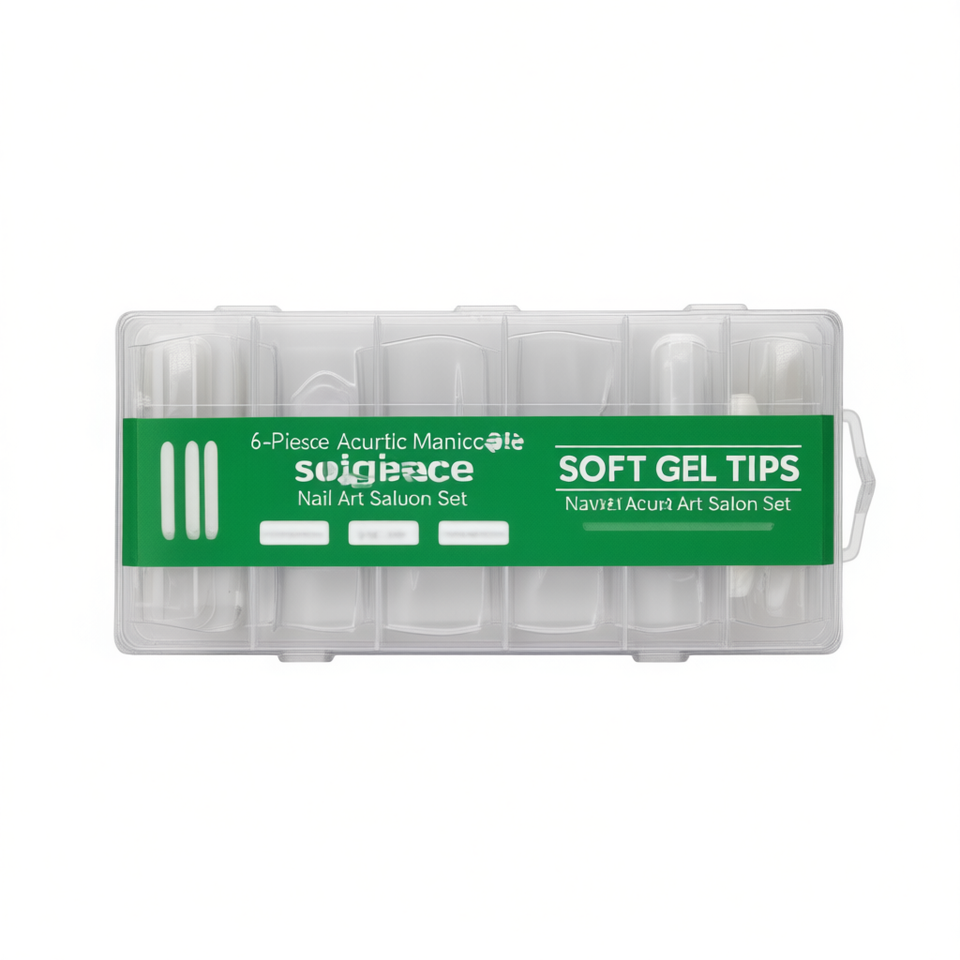 Kit de 6 faux ongles en gel souple pour manucure acrylique, forme cercueil, longueur moyenne, style transparent, pour salon de beauté