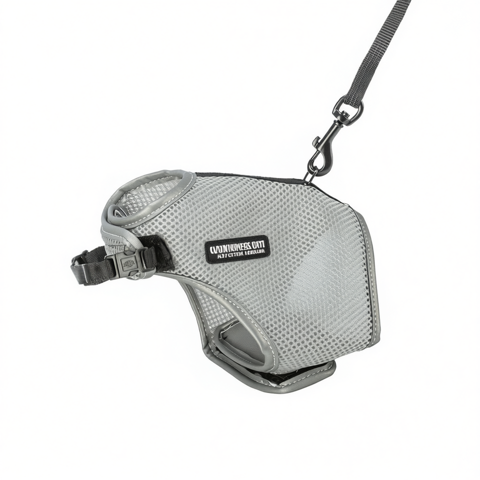 Harnais souple avec laisse en maille grise pour chien – Équipement de promenade pour animaux de compagnie