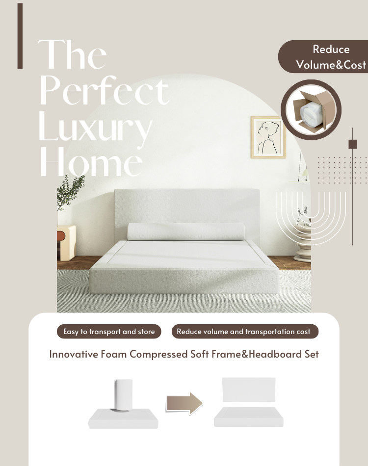 Soft Headboard Floating Up-holstered Beds King Size Bedding Frame Custom Bedroom Furniture Sets Storage Bed with Bedside Table