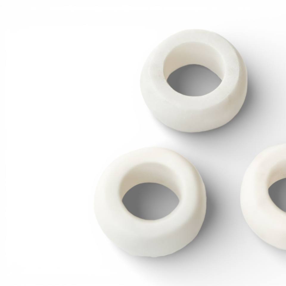 Soft Matte White Stone Napkin Rings With Hand Carved Rounded Design For Minimal Dining Decor Unique