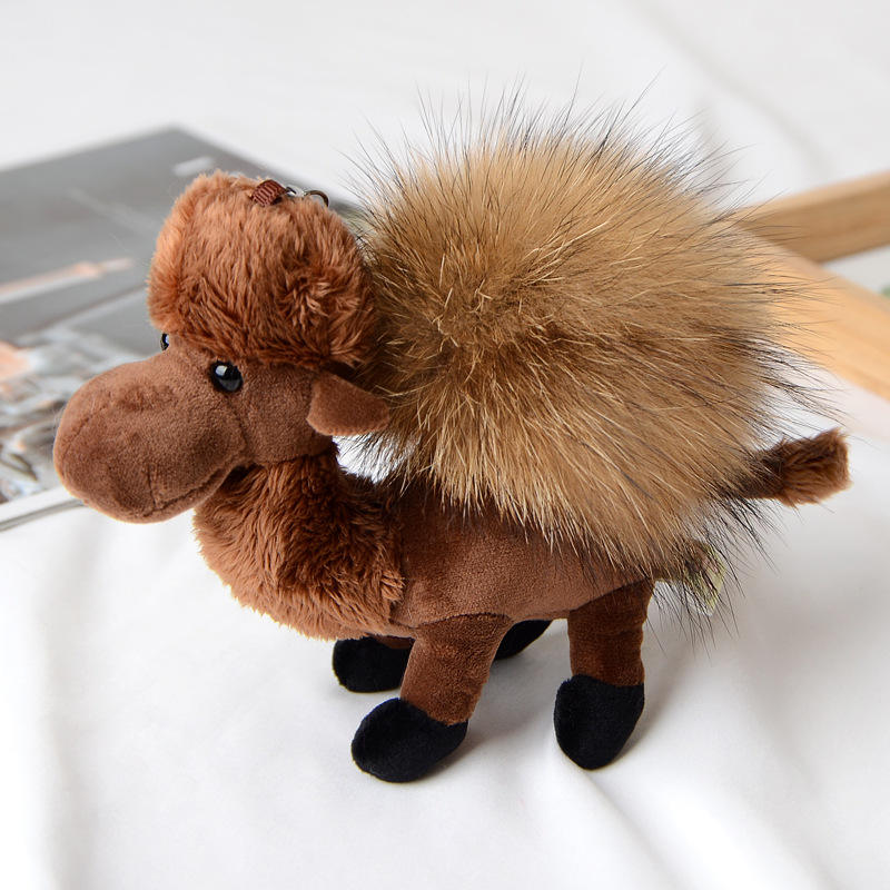Porte-clés en fourrure douce pelucheuse Petit chameau Poupée alpaga du désert Pendentif boule de fourrure Sac Accessoires de voiture Porte-clés cadeau pour femme