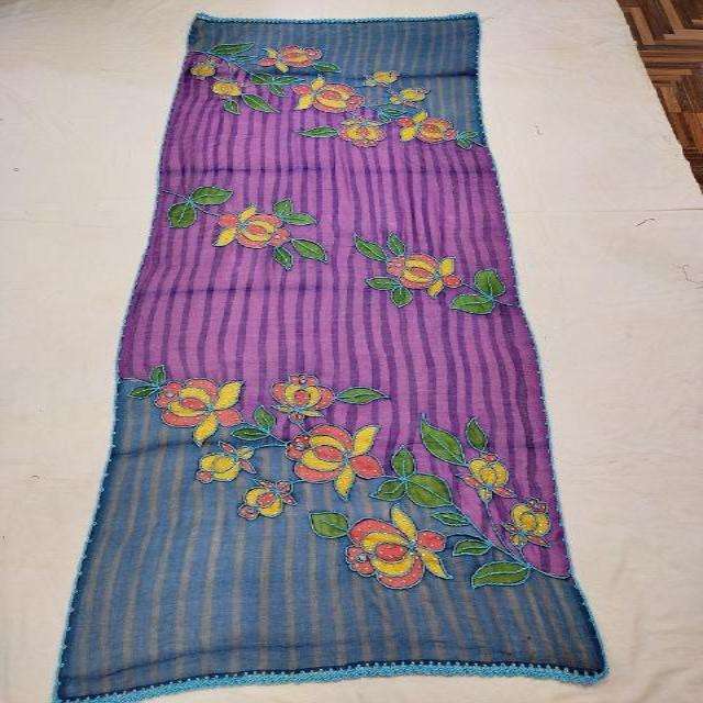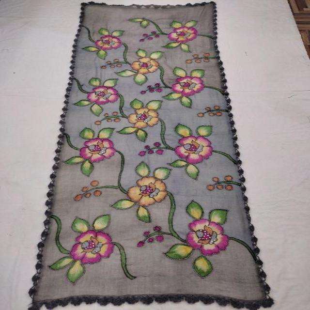 100%WOOL HAND PRINTED WITH EMB SCARF