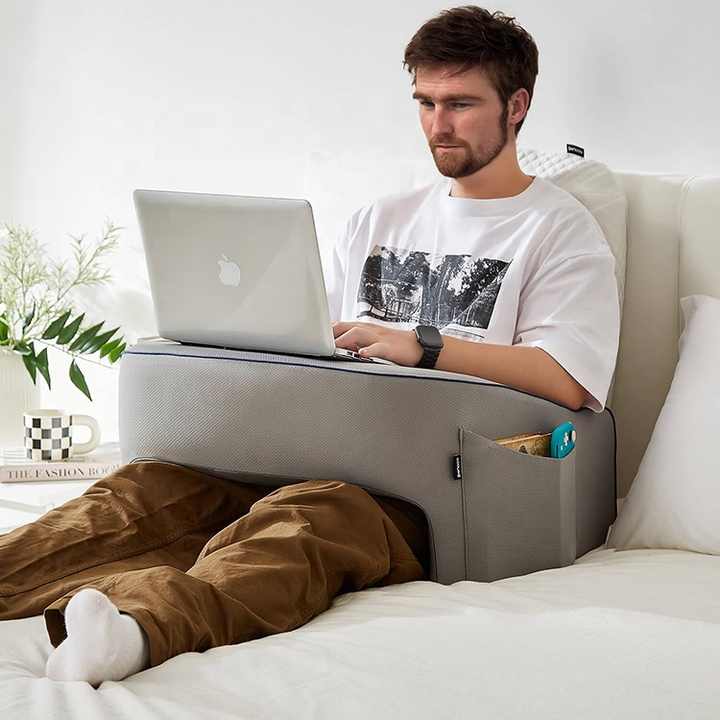 Soft Reading Pillow Arm Rest Lap Desk Pillow for Adult with Pocket Memory Foam Can Gaming Working Playing in Floor Bed Sofa