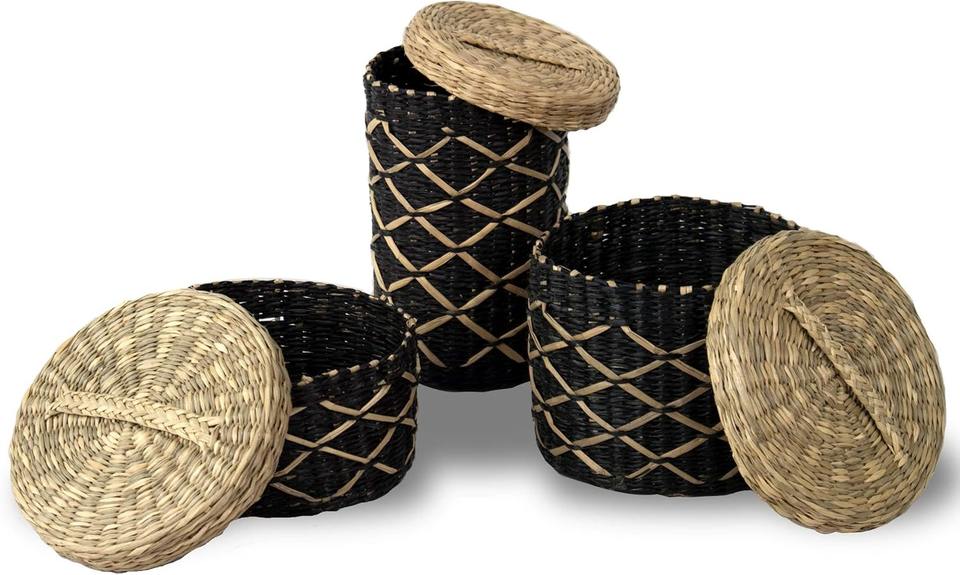 Boîte ronde en herbe de mer douce, boîte de rangement artisanale, écologique, naturelle, décoration intérieure et extérieure, vente en gros du Vietnam