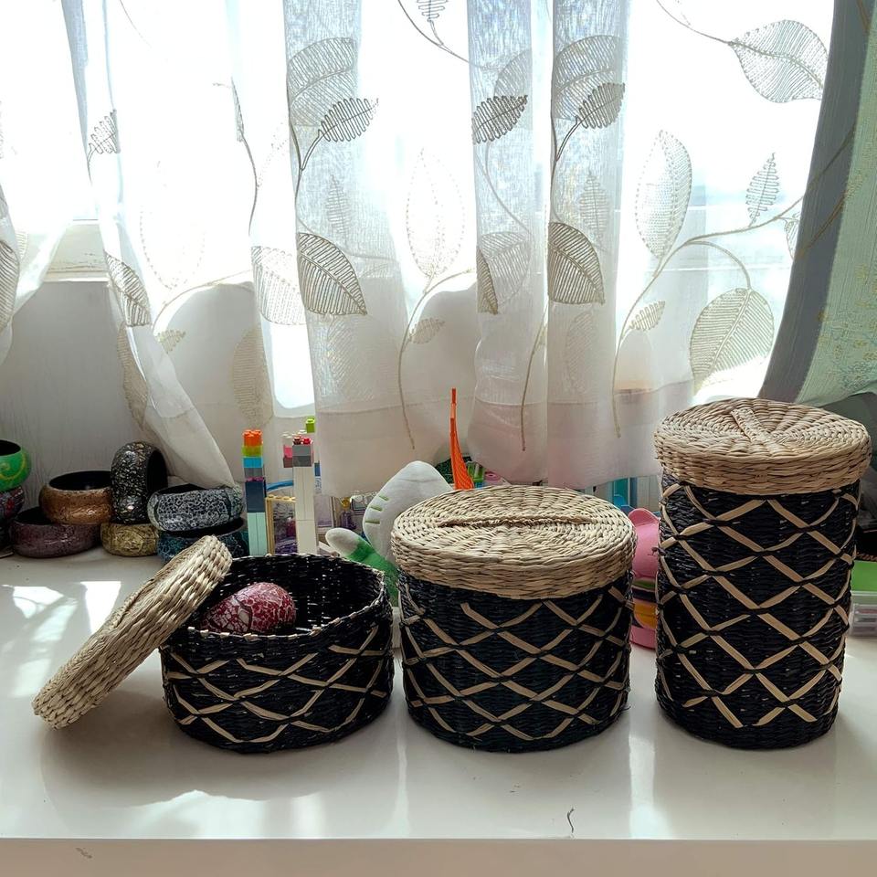 Boîte Ronde en Herbe Marine Souple L : D6 x H4,7 pouces M : D4,7 x H7 S : D6 x H3