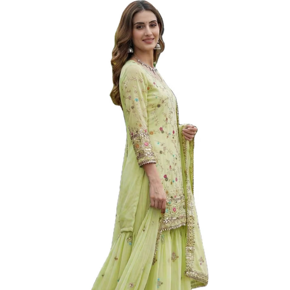 Tissu doux et lisse, belle combinaison de couleurs, style col rond, salwar kameez longueur genou avec ensemble dupatta assorti pour femmes ou filles