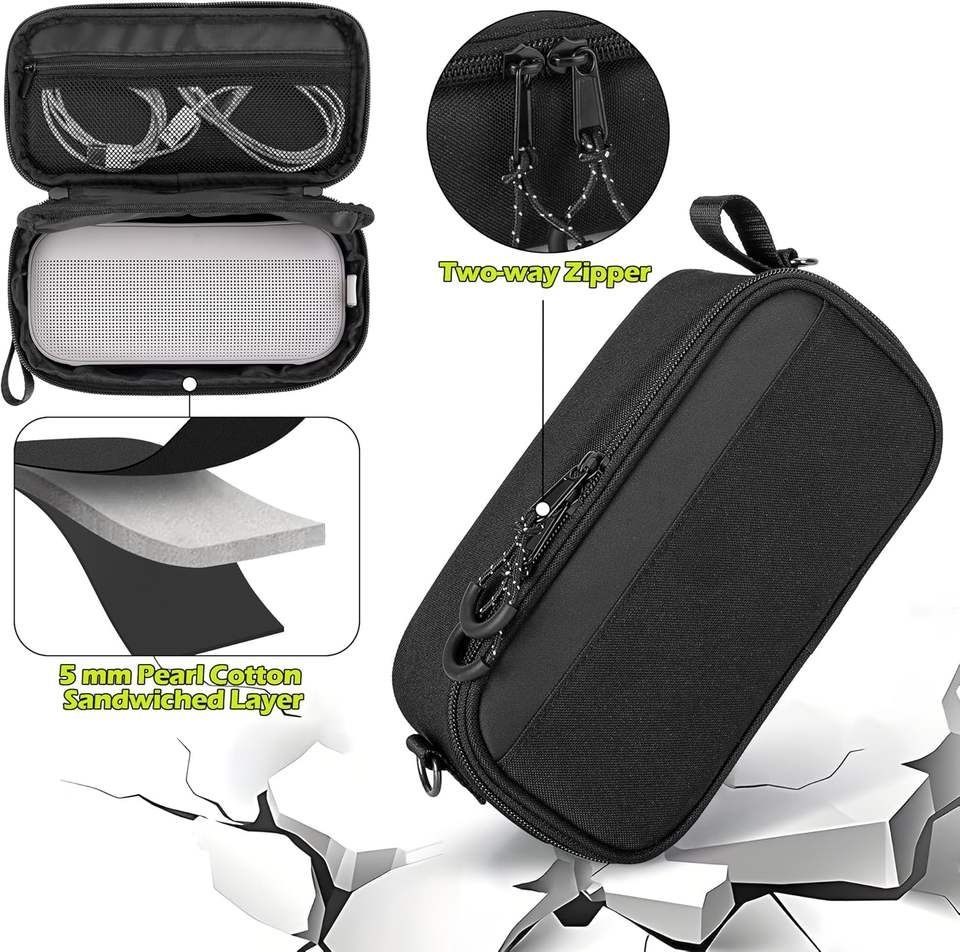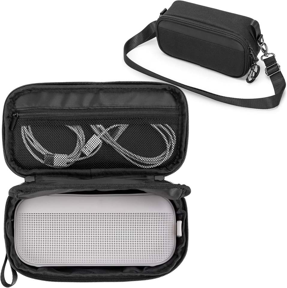 Étui de transport souple pour haut-parleur compatible avec le haut-parleur Bluetooth Bose SoundLink Flex, poche en filet pour chargeur