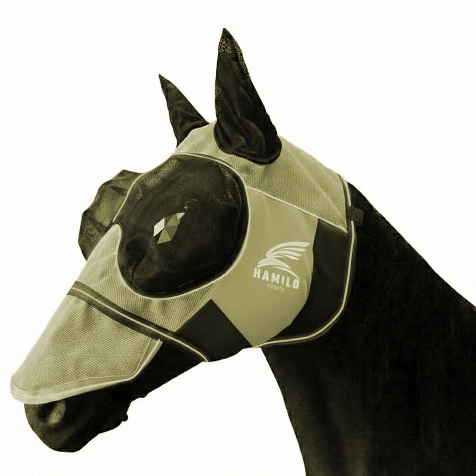 Masque anti-mouches pour chevaux, doux, extensible, protection UV, confortable, avec oreilles, respirant, élastique, avec couvre-yeux en maille