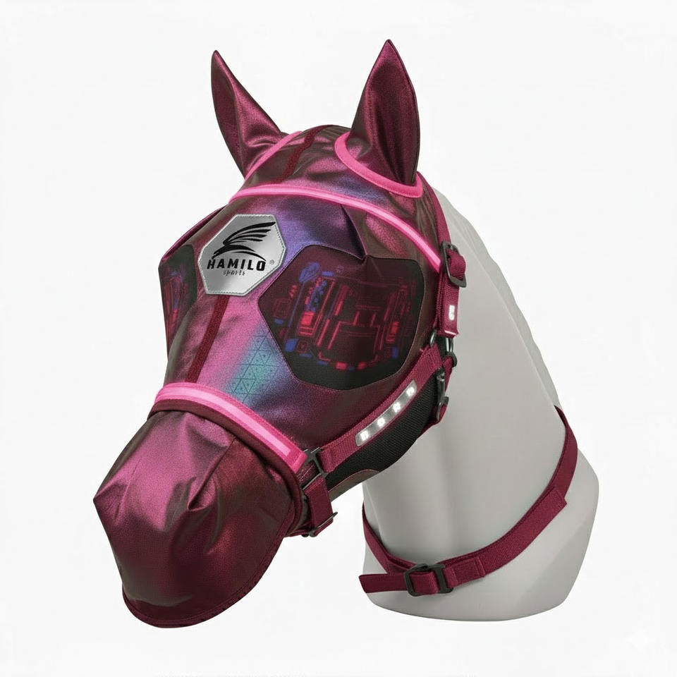 Masque anti-mouches pour chevaux, doux, extensible, protection UV, confortable, avec oreilles, respirant, élastique, avec couvre-yeux en maille