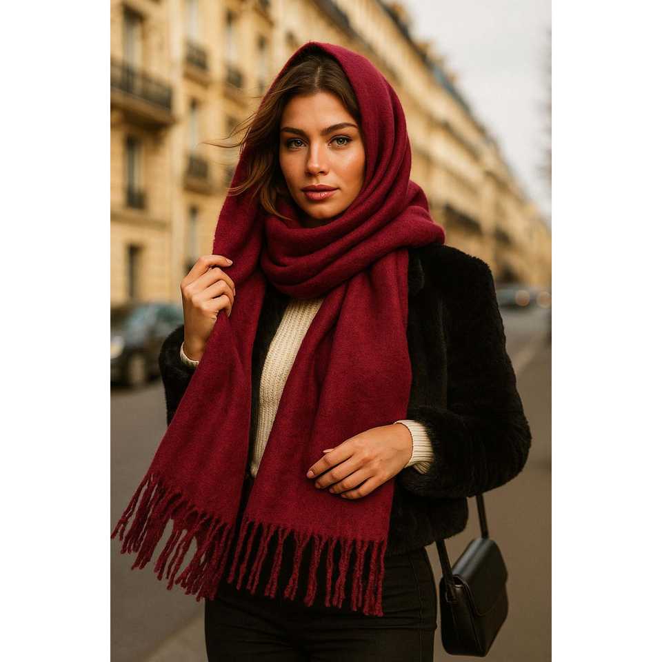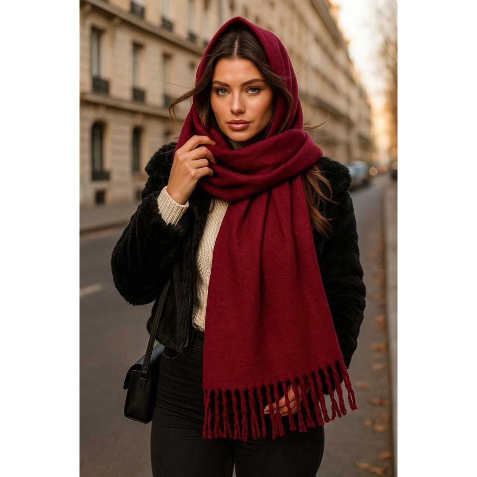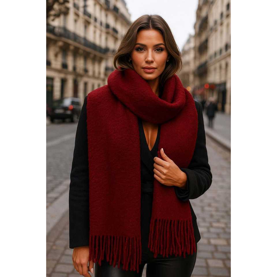 Écharpe épaisse blanche à texture douce avec des glands, accessoire polyvalent chaud pour tous les jours et les occasions spéciales pour l'automne - SAL1257