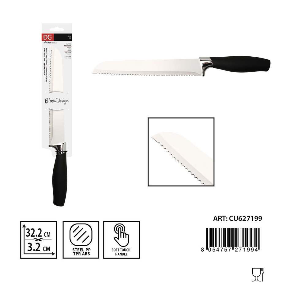 Couteau à pain en acier inoxydable doux au toucher de 8 pouces 32.2x3.2x2.5 cm couteau de cuisine avec manche en ABS caractéristiques tranchantes pour l'affûtage des couteaux