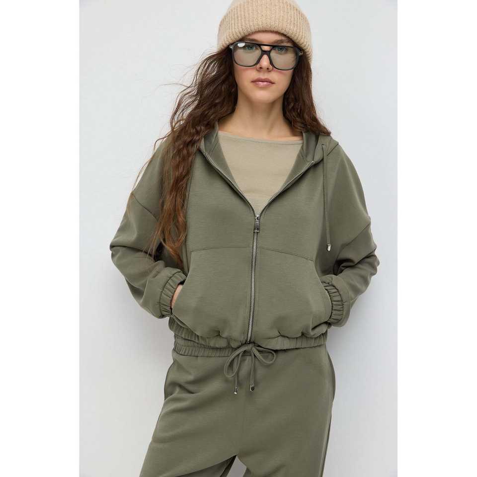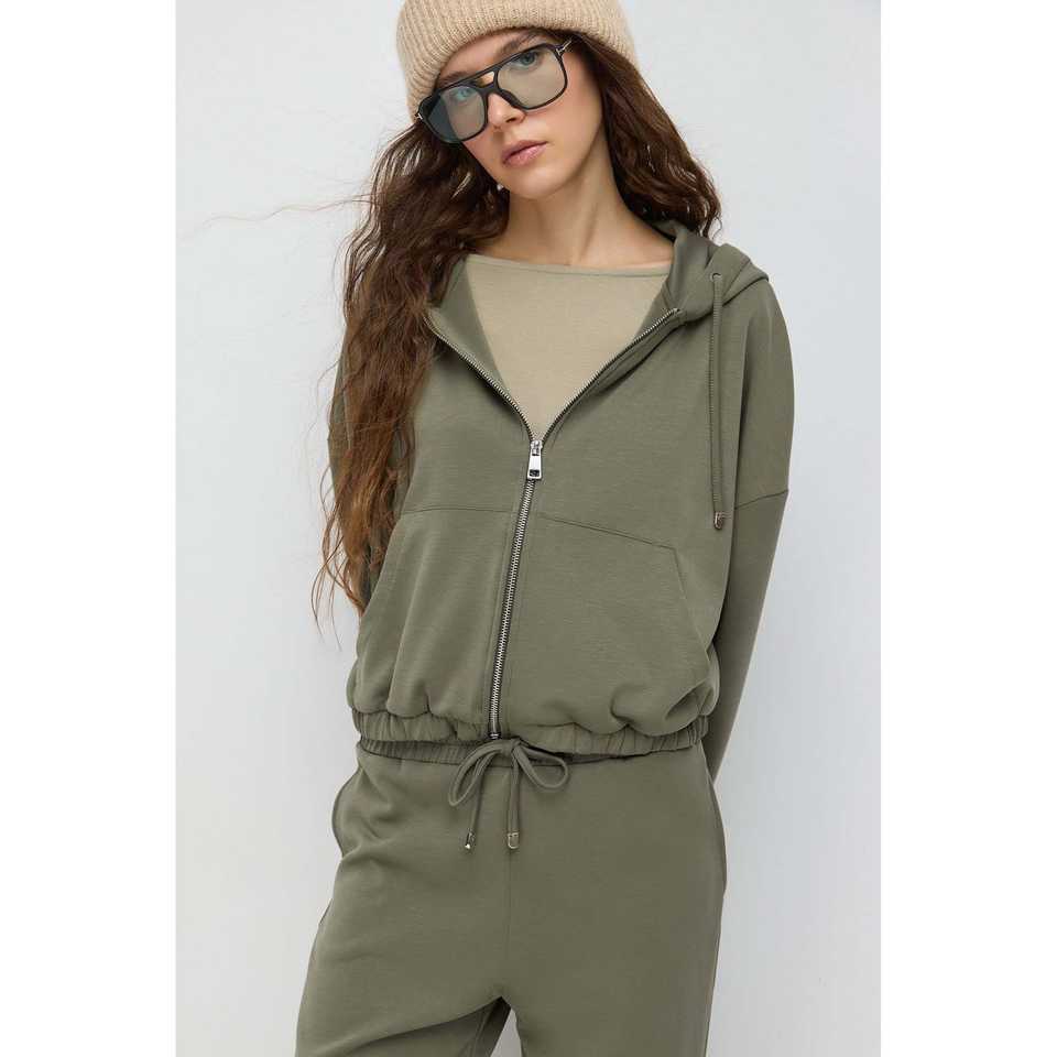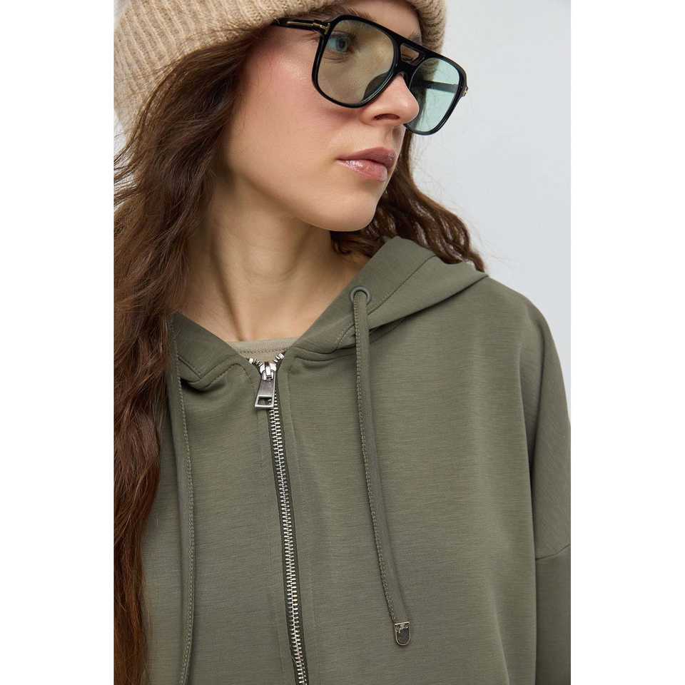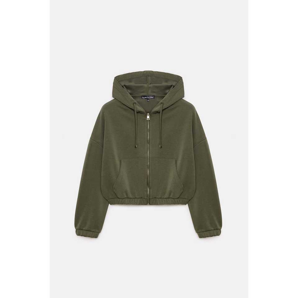 Sweat-shirt court zippé à capuche doux au toucher pour le quotidien