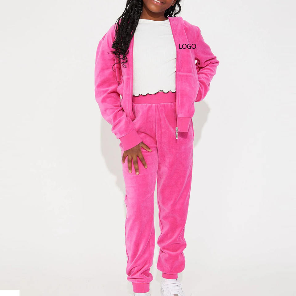 Survêtement en tissu de velours doux pour filles avec logo personnalisé manches longues tissu respirant et confortable prix de gros couleur unie