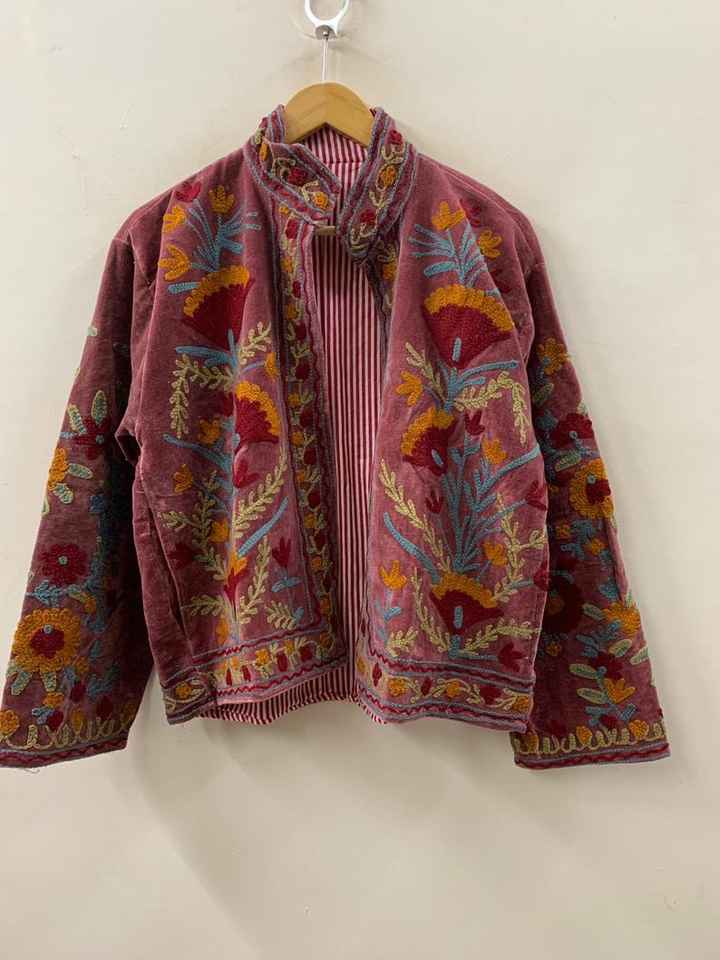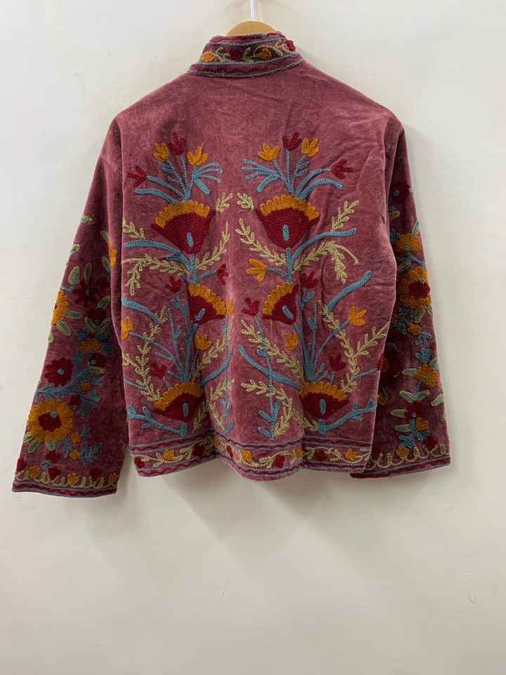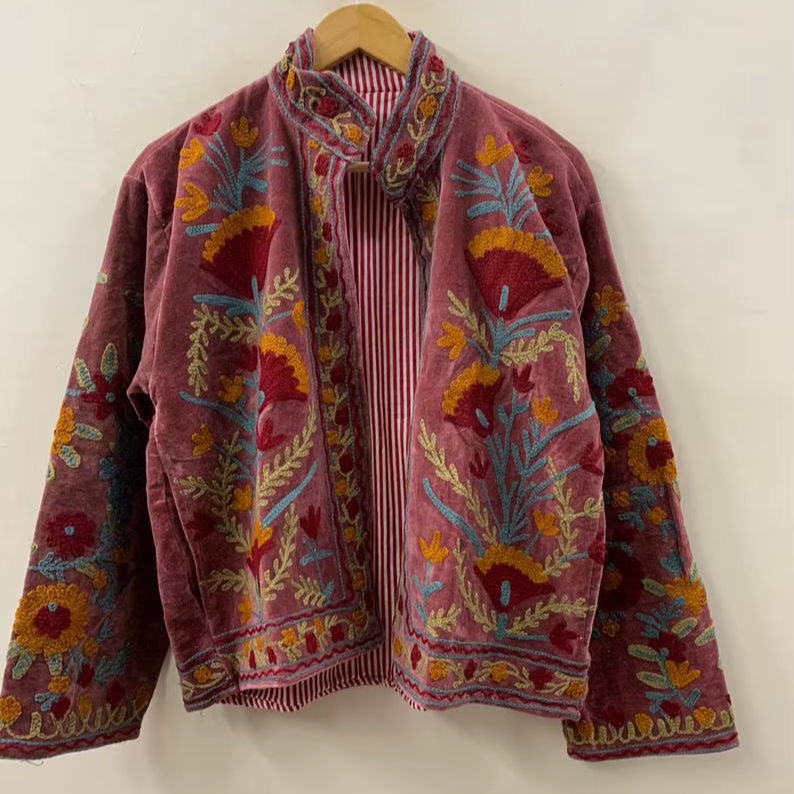 Veste courte en velours doux brodée Suzani, veste de printemps, manteau ouzbek d'inspiration vintage, veste en velours tendance pour femmes