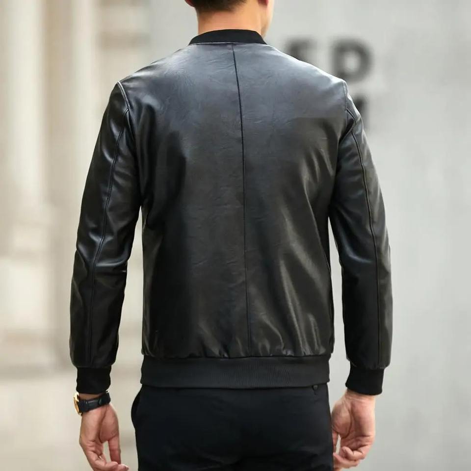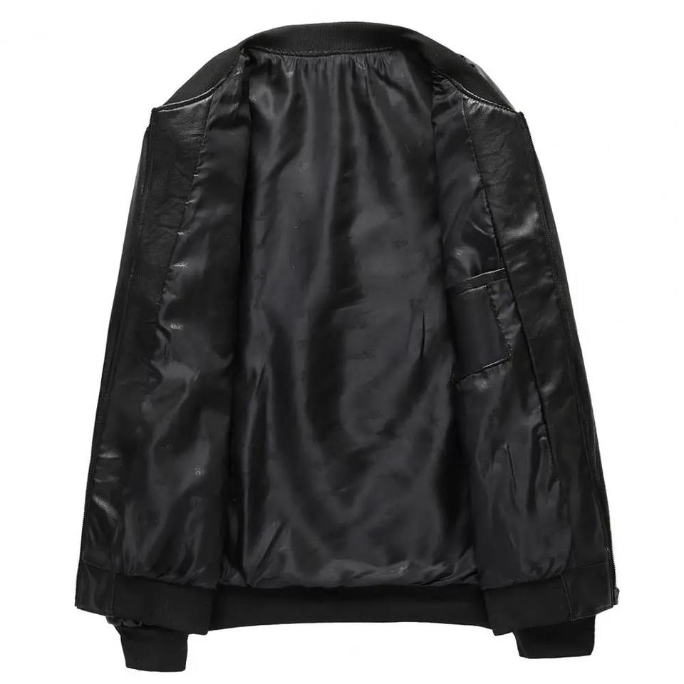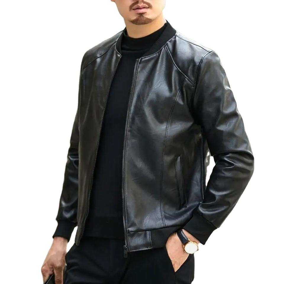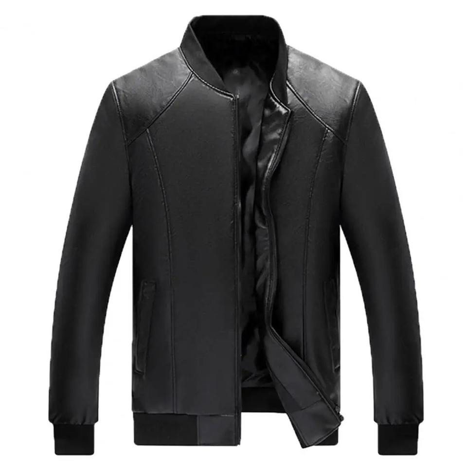 Veste élégante en similicuir pour hommes, col montant doux et chaud avec poches zippées, toile de coupe régulière pour la saison d'hiver et l'automne.