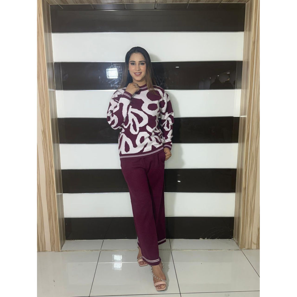 Femmes Hiver Géométrique Extensible Goutte Épaule 2 Pièces Ensemble Laine Joggers Pantalon et Sweat À Capuche Collection Automne