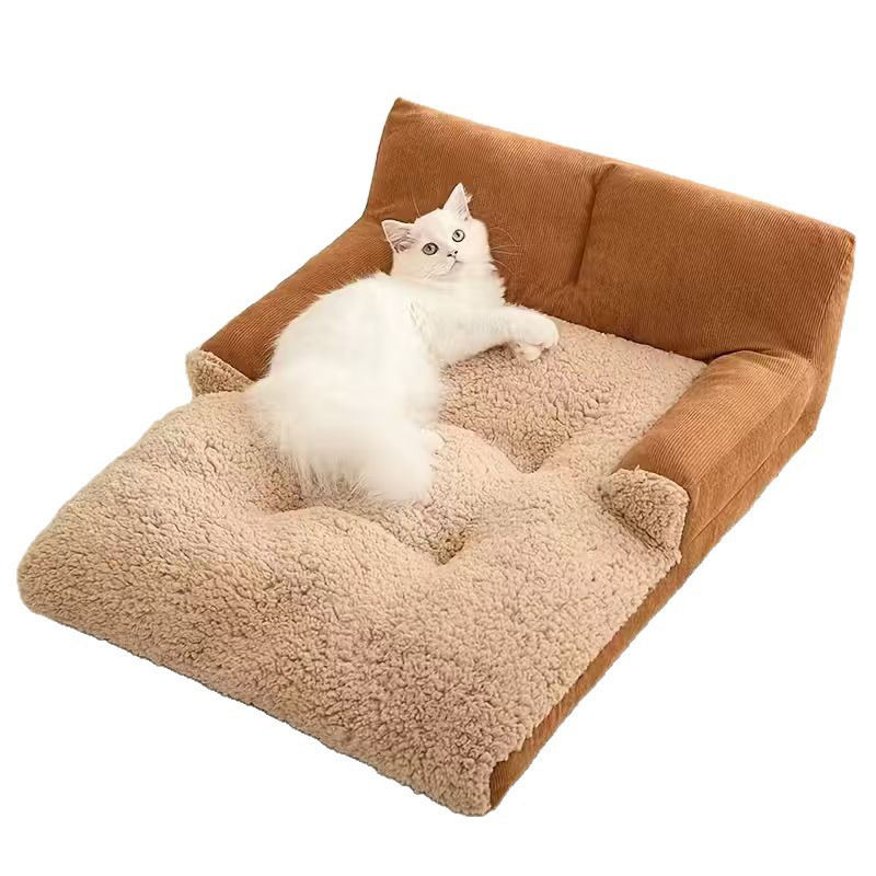 Lit pour animaux de compagnie en forme de rectangle doux et moelleux avec une zone de repos supplémentaire pour les petits et grands chiens et chats