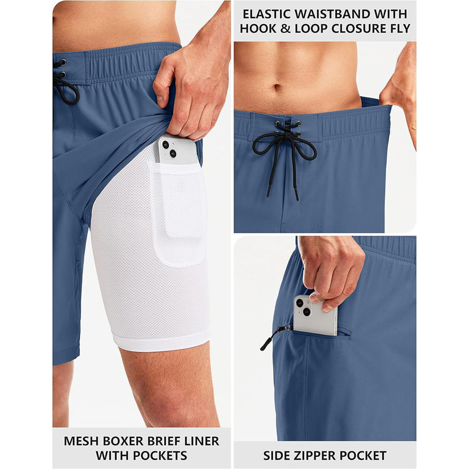 Maillot de bain en polyester doux pour hommes avec impression de logo personnalisée Fabrication OEM Doublure respirante Vêtements de plage de marque privée