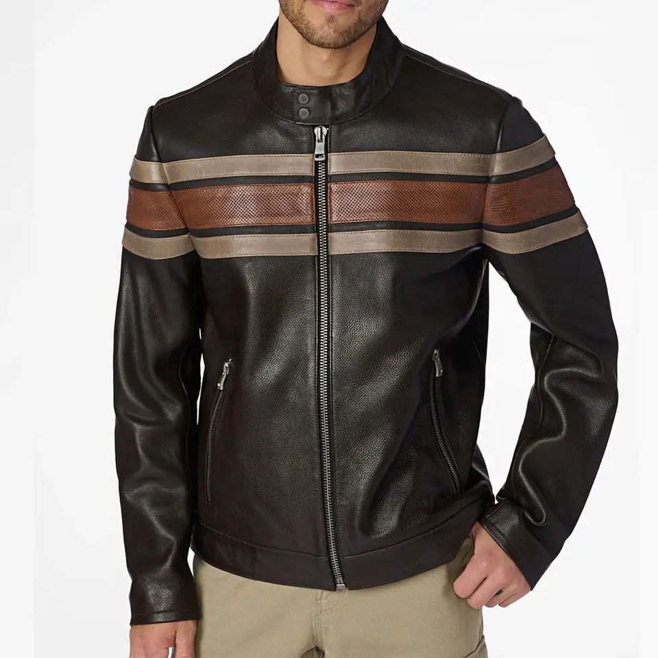 Veste en cuir formel à toucher doux pour homme, design à fermeture éclair intégrale, poches latérales en toile, poignets côtelés, vêtement d'hiver coupe-vent