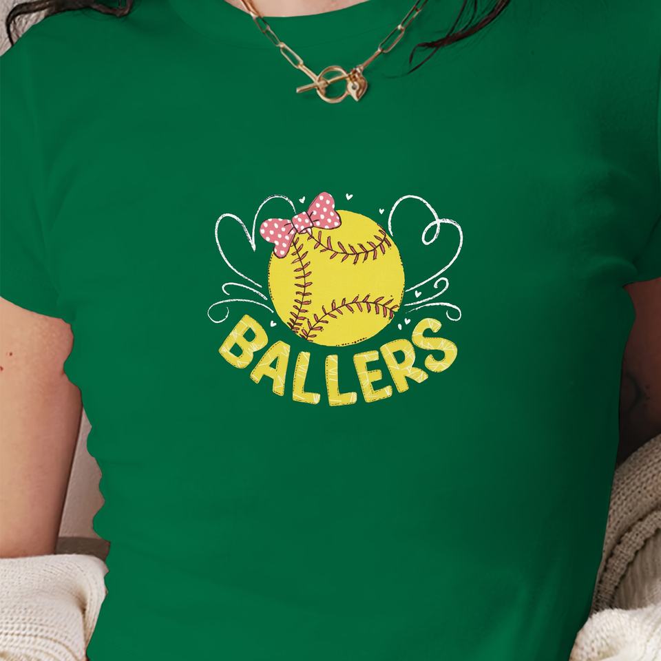 Softball with pink bow women's fashion short t-shirt