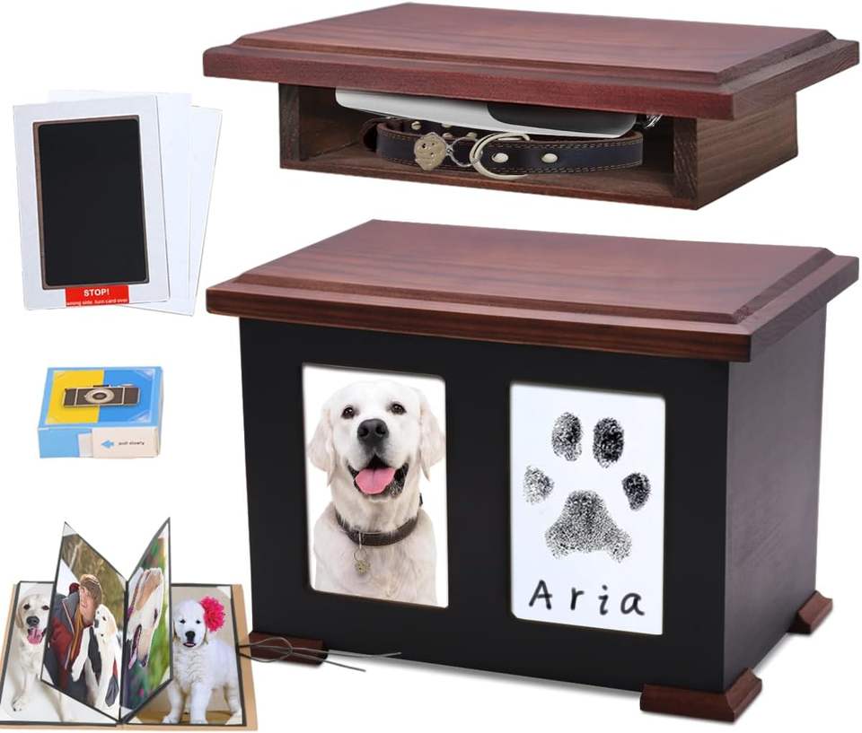 Sofunii Ashes,XLarge Wooden Dog Urn Keepsake,Cat Urns Ashes, Pet Memory Box Memorial Boxs with Paw Print Impression