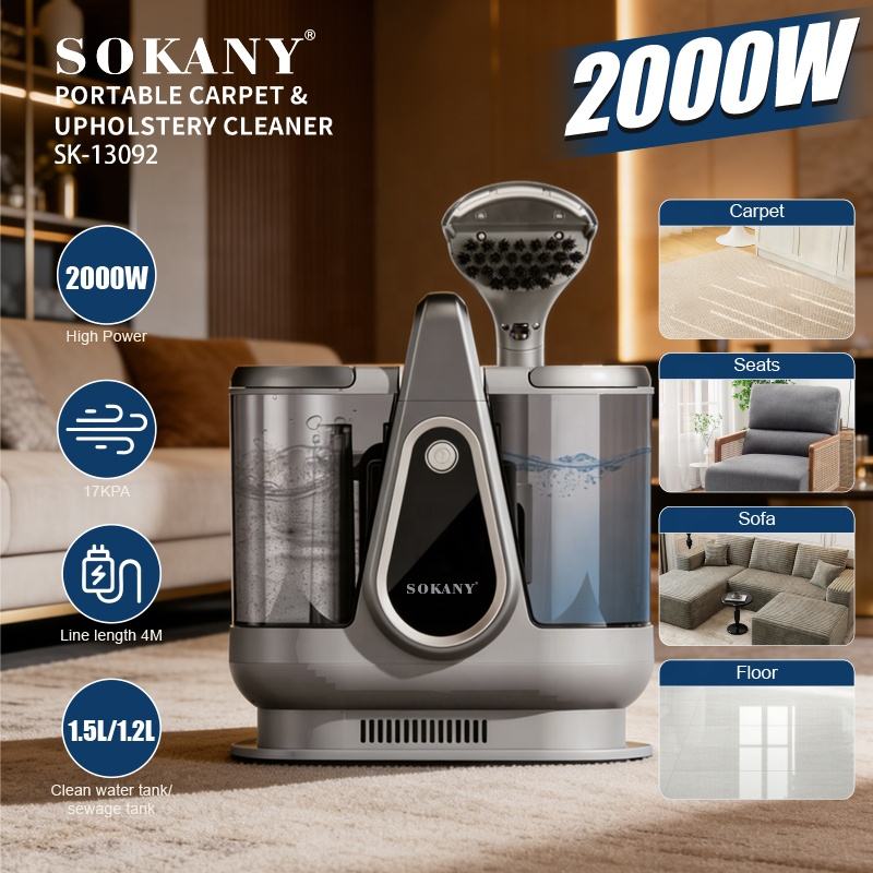 Sokany Aspirateur Nettoyeur de Taches Portable Sans Sac pour Tapis et Tissus d'Ameublement d'Hôtel, Utilisation Humide et Sèche