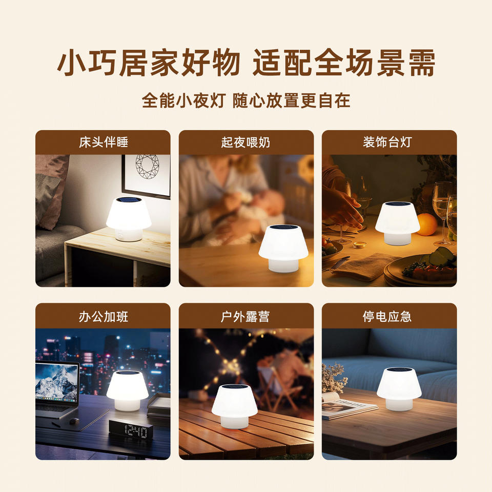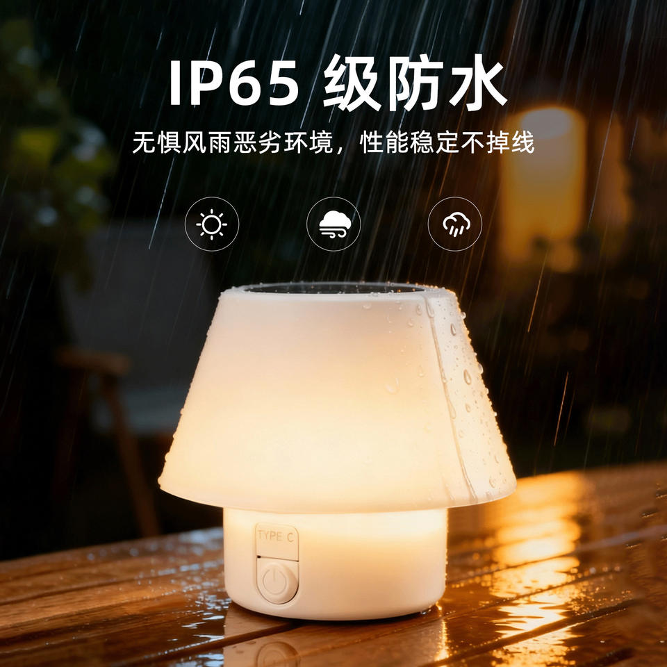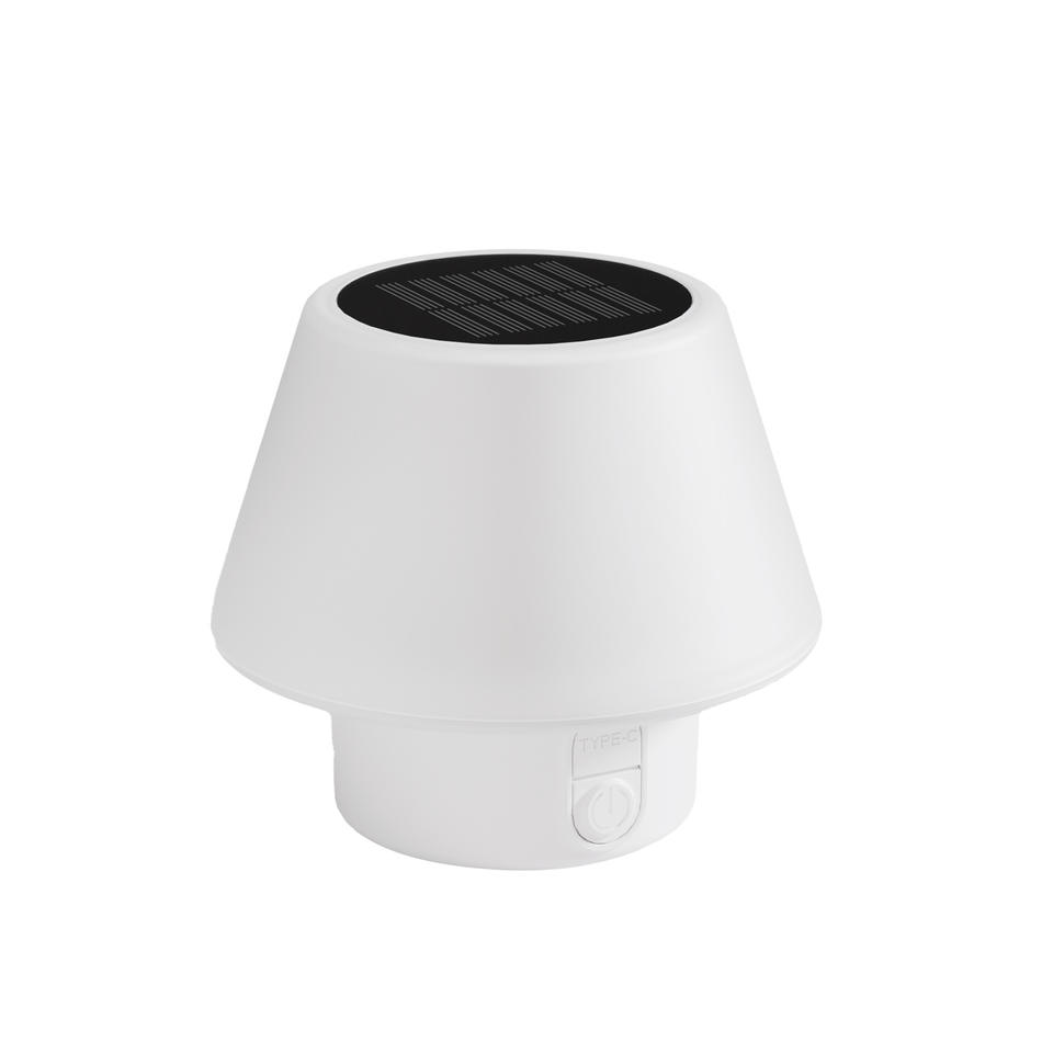 Lampe de table solaire LED blanc chaud, type C, étanche, lumière nocturne extérieure pour chambre et cour