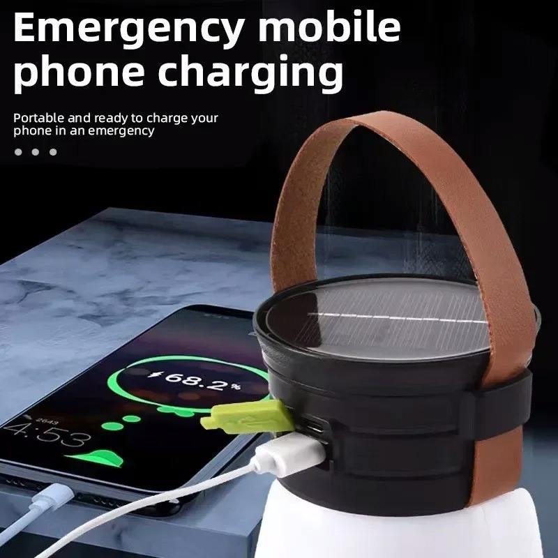 Lanterne solaire de camping rechargeable, lampe de tente portable, 5 modes, lampe d'urgence étanche pour l'extérieur, lampe torche LED puissante, lampe de travail